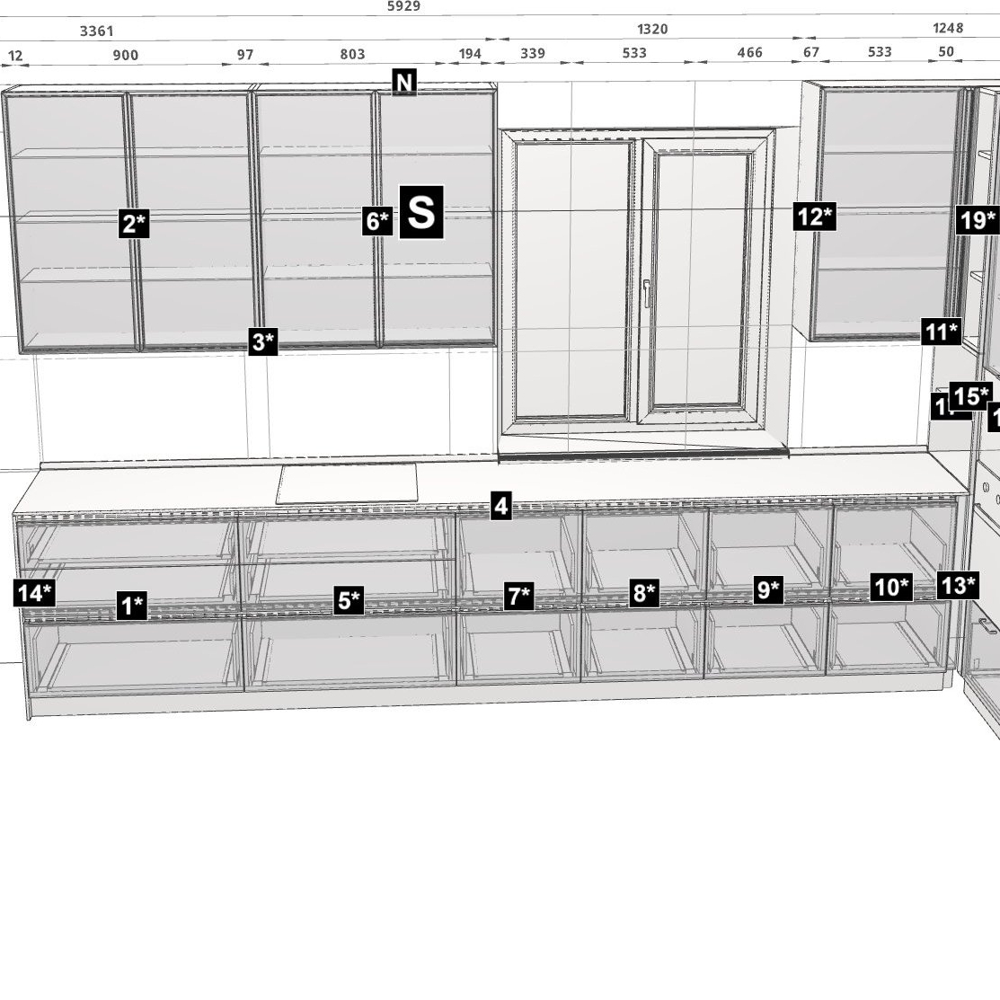 *Cel mai accesibil preț din descriere reprezintă cea mai mică sumă cu care puteți achiziționa această bucătărie păstrând acelaș vizual. Se modifică doar tipul materialului, furniturii, organizatoarelor și a blatului!