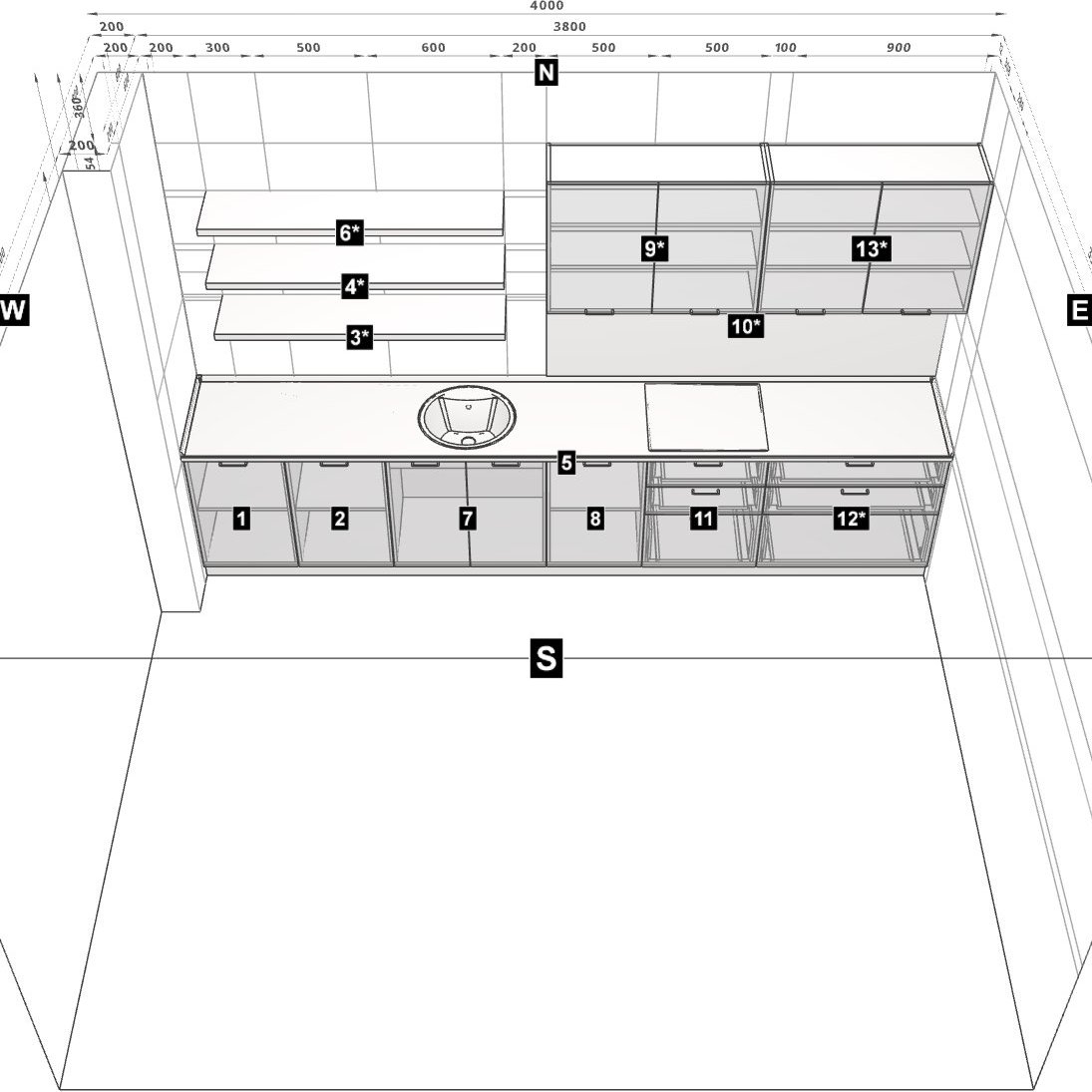 *Cel mai accesibil preț din descriere reprezintă cea mai mică sumă cu care puteți achiziționa această bucătărie păstrând acelaș vizual. Se modifică doar tipul materialului, furniturii, organizatoarelor și a blatului!