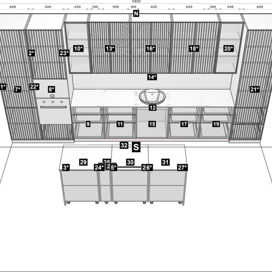 *Cel mai accesibil preț din descriere reprezintă cea mai mică sumă cu care puteți achiziționa această bucătărie păstrând acelaș vizual. Se modifică doar tipul materialului, furniturii, organizatoarelor și a blatului!