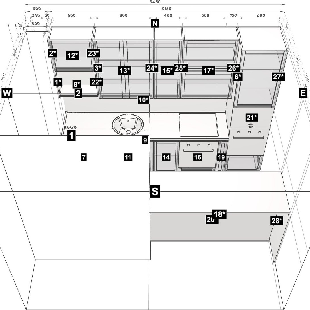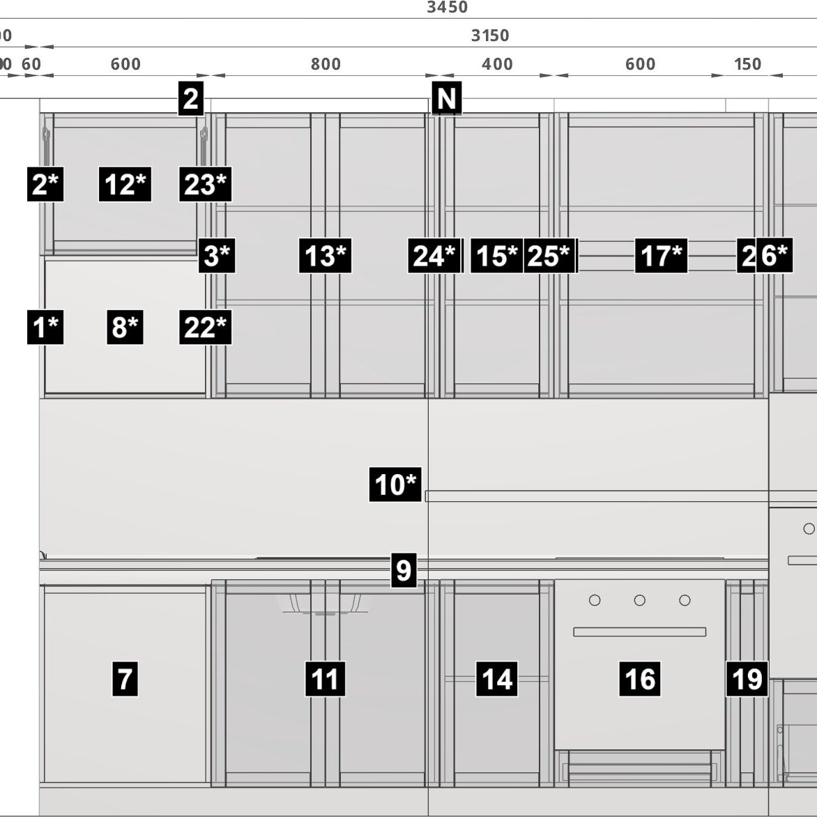 *Cel mai accesibil preț din descriere reprezintă cea mai mică sumă cu care puteți achiziționa această bucătărie păstrând acelaș vizual. Se modifică doar tipul materialului, furniturii, organizatoarelor și a blatului!