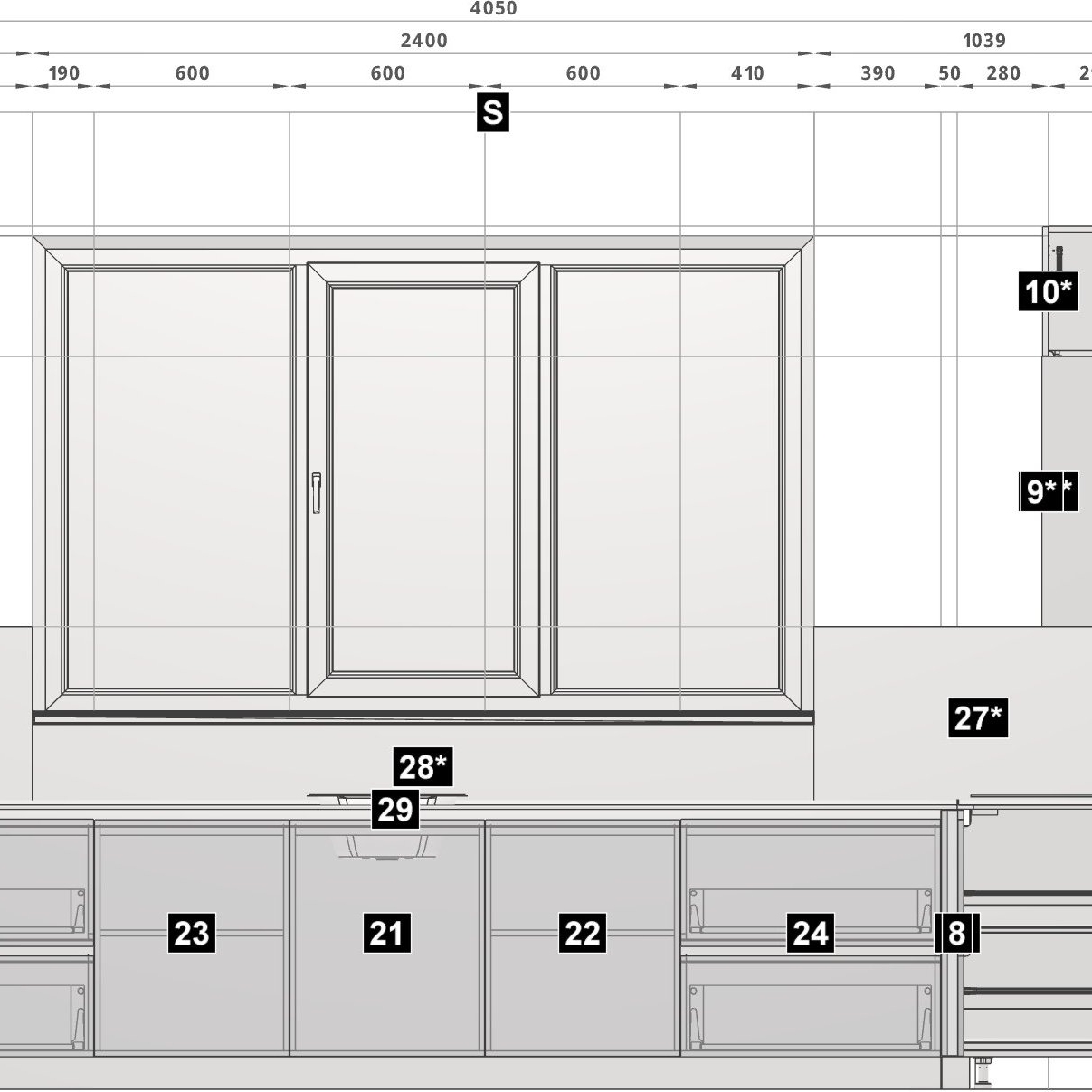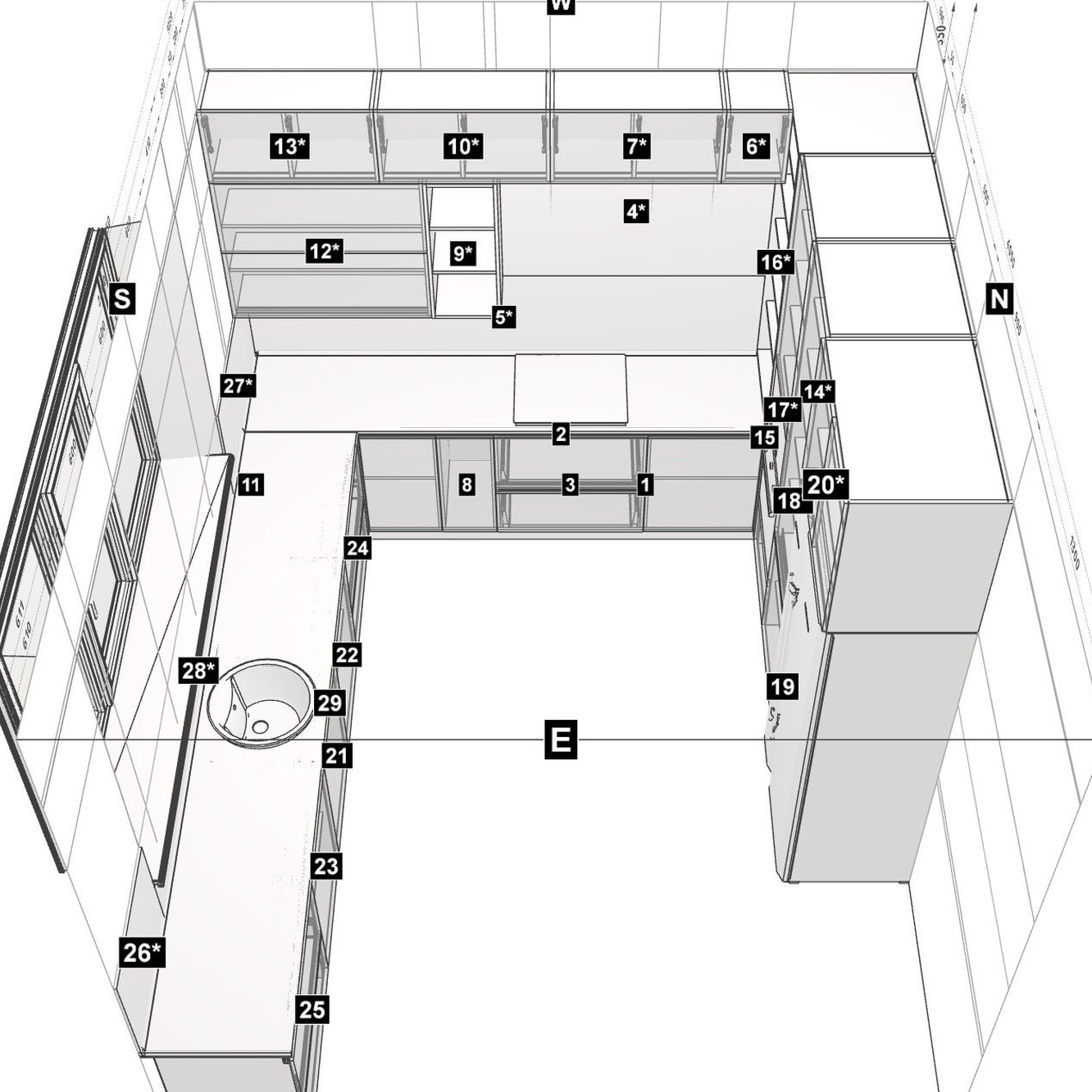 *Cel mai accesibil preț din descriere reprezintă cea mai mică sumă cu care puteți achiziționa această bucătărie păstrând acelaș vizual. Se modifică doar tipul materialului, furniturii, organizatoarelor și a blatului!