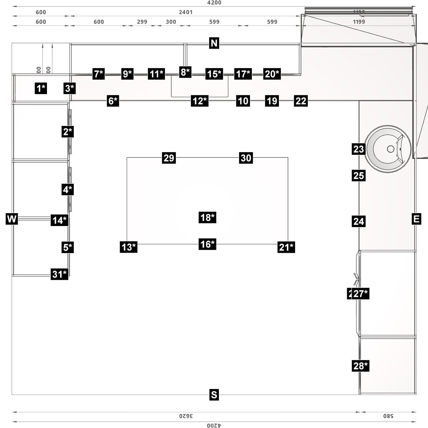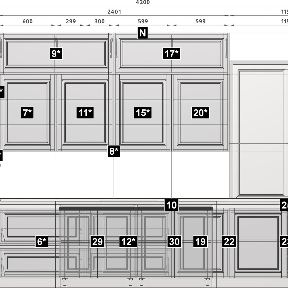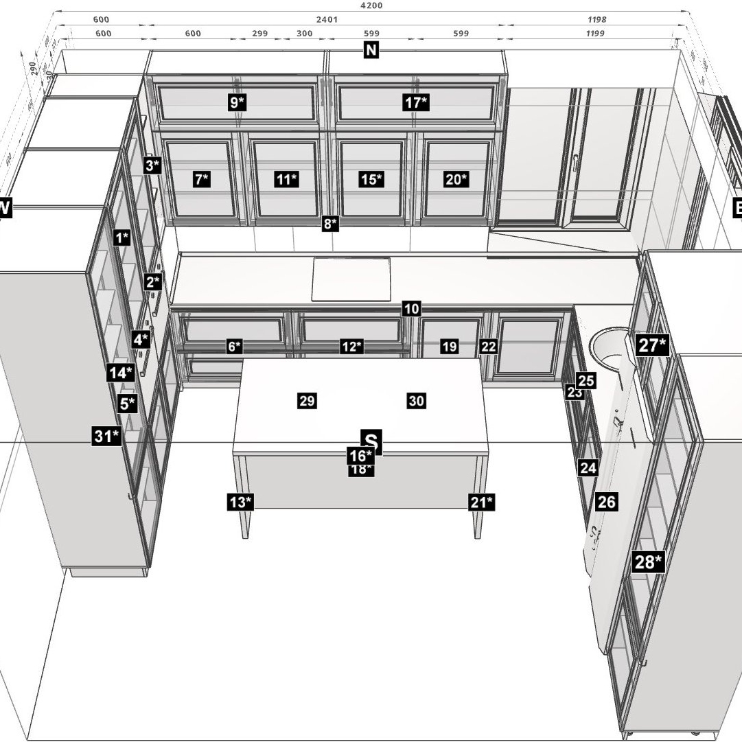 *Cel mai accesibil preț din descriere reprezintă cea mai mică sumă cu care puteți achiziționa această bucătărie păstrând acelaș vizual. Se modifică doar tipul materialului, furniturii, organizatoarelor și a blatului!